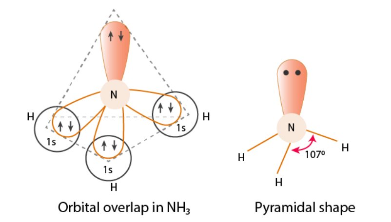 2. 3 个杂化轨道中: 2 个用于形成 σ 键, 1 个用于形成孤电子对