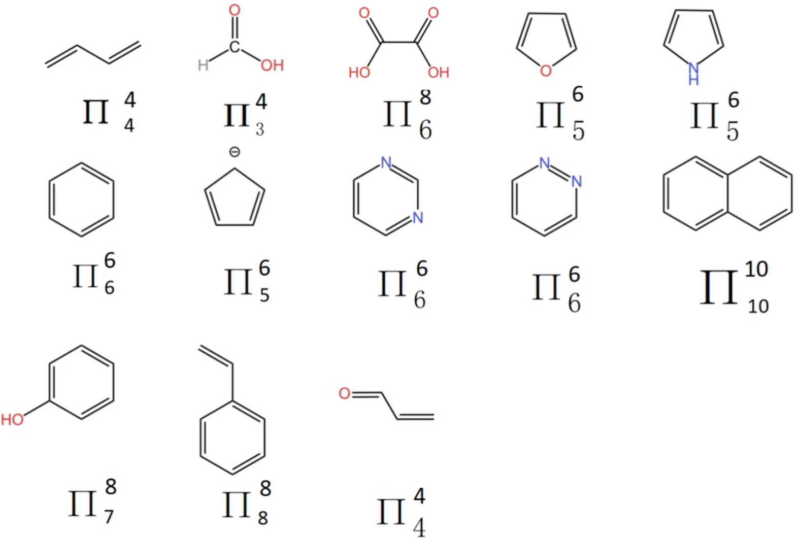 其中,m 指参与形成大 π 键的原子数,n 指参与形成大 π 键的电子数