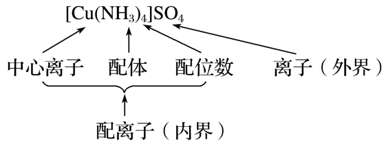 2. 组成:配合物 [Cu(NHA3)A4]SOA4 的组成如下图所示: