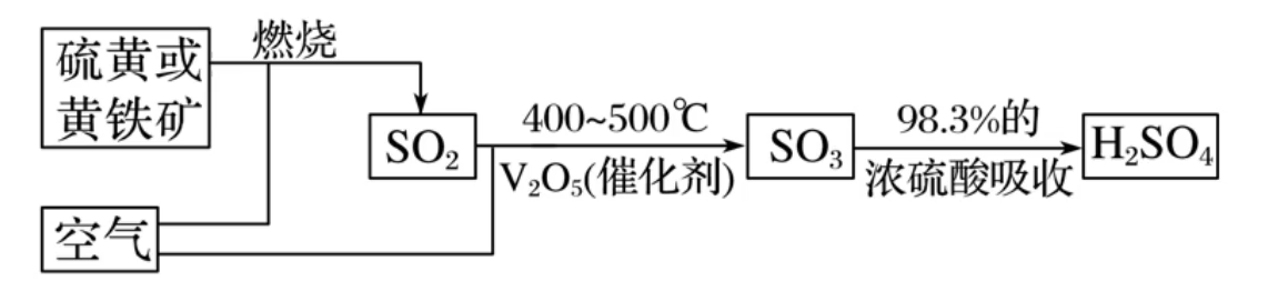 (一般工业上不用水吸收三氧化硫,而是使用98%浓硫酸,因为三氧化硫溶于水大量放热,水沸腾形成酸雾,酸雾随着气流离开,减少对三氧化硫的吸收效果)
